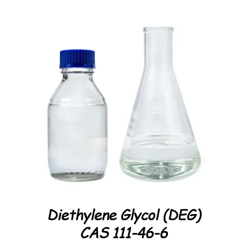 דיאתילן גליקול (CAS No. 111-46-6), הידוע גם בשם 2,2'-אוקסידיאתנול, הוא נוזל צמיג חסר צבע, חסר ריח, היגרוסקופי, בעל טעם מתוק חריף ונוסחה כימית C₄H₁₀O₃. הוא כולל מבנה מולקולרי סימטרי (HOCH₂CH₂OCH₂CH₂OH) ומציג קשר מימן חזק, התורם לנקודת הרתיחה הגבוהה שלו (245 מעלות) ולצמיגות (35.7 mPa·s ב-20 מעלות).